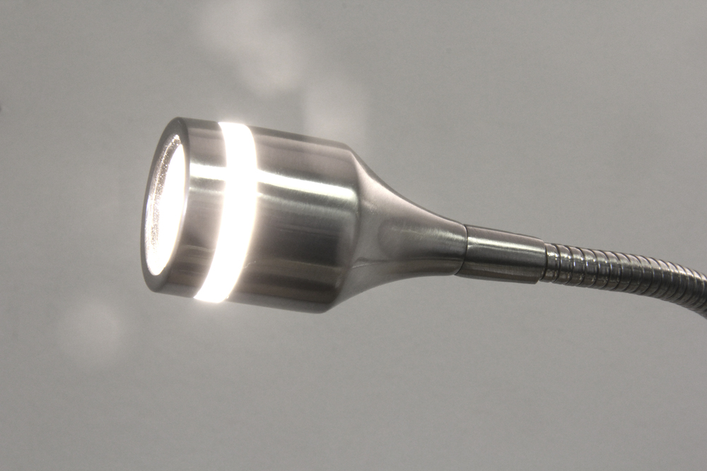 Designed for today’s efficient, practical and contemporary lifestyle, the Prospect LED clip lamp is made entirely of metal with a convex glass magnifier light shield. A decorative light band accents the metal shade and the gooseneck permits total adjustment for height and direction. Choose from a brushed steel finish or matte black with black fabric-covered cord. A toggle switch located on the clip base turns the lamp on and off. This lamp is smart outlet compatible. The LED light is integrated into the lamp and is not replaceable, but lasts 50,000 hours!