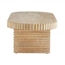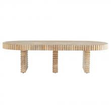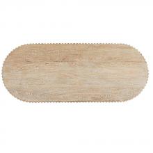 An overscaled slab of limed-wash mango wood is heavily carved and sandblasted to bring out the material's natural texture. Finished with a rhythmic grooved texture on the sides and legs, the pure form of this transitional style allows it to work within any coastal or contemporary setting. A multi-purpose accent piece, the Hilbeck can also serve as a bench. Finish will vary.