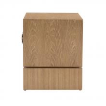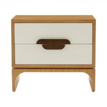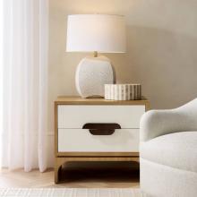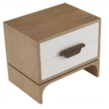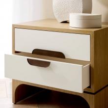 We adapted our classic Kianna credenza in a smaller size to perfectly pair with a bed or sofa. A white lacquer face is set within a veneered oak wood frame in an oyster finish, delivering style and function through architectural elements. Inspired by modernist sculpture, the curved door pulls are crafted in heritage brass, while the exaggerated base features a racing stripe reveal visible from every angle. Soft-close doors.