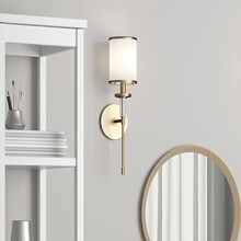 - The tailored look with crystal accents of the Hatfield wall sconce looks great in transitional settings.