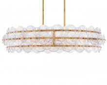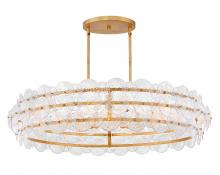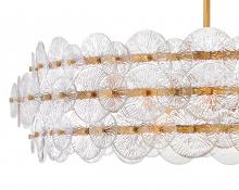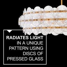 Rene radiates light through multiple layers of beautiful, pressed glass disks. Rene’s signature touch highlights a Distressed Brass finish, evoking both transitional and glam influences.