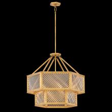 A reimagining of vintage designs from the 40s and 50s, Sura’s transitional, hexagonal Distressed Brass frame creates a glamorous yet understated and tailored appeal. Cylindrical glass rods set at alternating angles echo a soft herringbone pattern, juxtaposing geometry within geometry. Layered details create a reeded effect that is reflective and alluring.