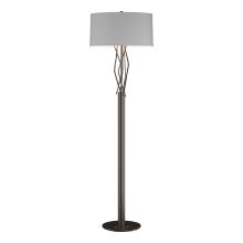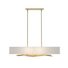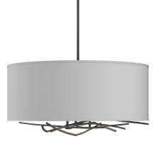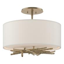 Sylvan meets steel with multi-faceted "twigs" forged from red-hot round bar stock hammered for texture and shape by our Vermont artisans. The twigs create the illusion of supporting the round drum shade that the sculpture hangs beneath.