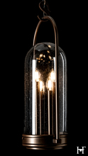 This tall, slim focal piece is chain-hung, allowing it to easily be placed to light verandas, patios and entryways. The Davis is a fresh interpretation of a traditional lantern style, featuring a clear, seeded, domed glass cylinder with four tall, exposed candlesticks. Its stylized hook is but one of the beautiful details of this hanging fixture. Available in a choice of AAMA 2604-rated Coastal Outdoor Finishes.