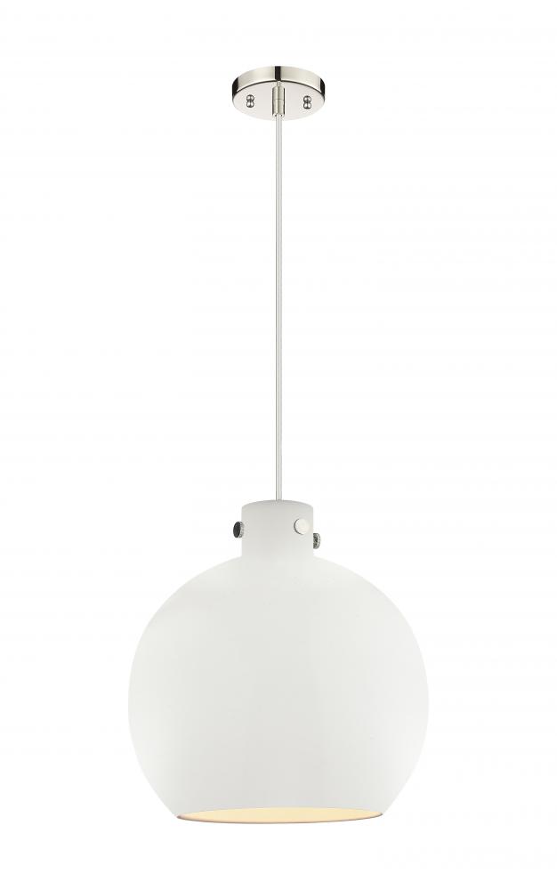 Newton Sphere - 1 Light - 16 inch - Polished Nickel - Matte White Shade - Cord hung - Pendant