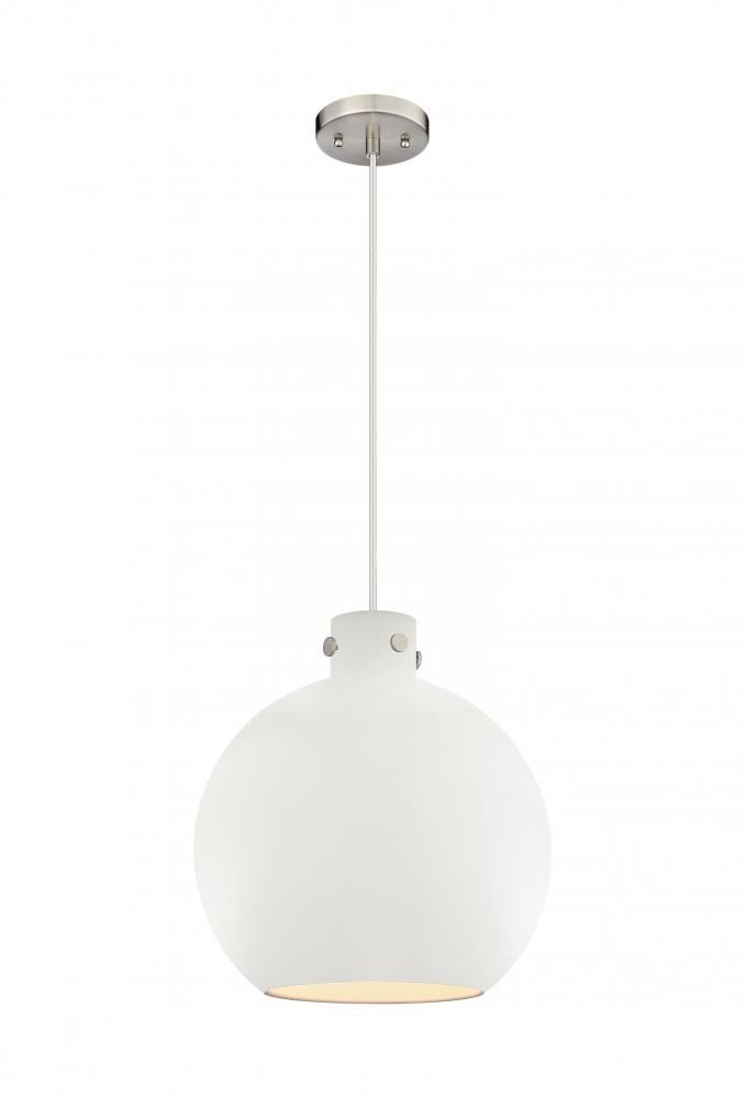 Newton Sphere - 1 Light - 16 inch - Satin Nickel - Matte White Shade - Cord hung - Pendant