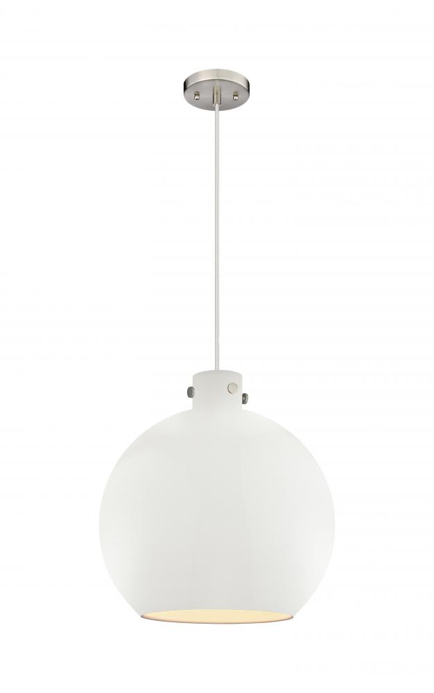Newton Sphere - 1 Light - 18 inch - Satin Nickel - Matte White Shade - Cord hung - Pendant