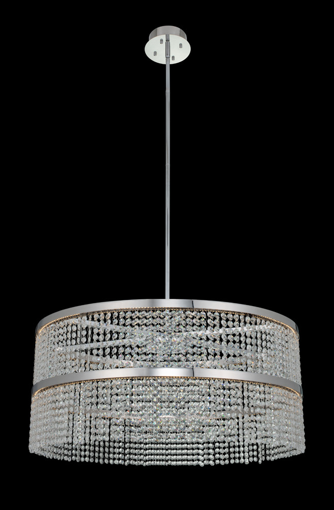 The Cortina Collection offers romance and mystery by integrating LED light into its floating Polished Chrome (CH) rings. The light softly filters through brilliant Firenze™ crystal strands.