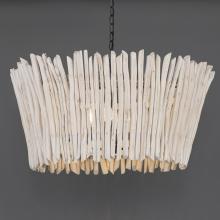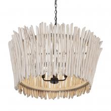 Staggered branches of eucalyptus are meticulously linked together to form a tapered bouquet shade, showcasing exceptional handcraftsmanship. Each branch is individually shaped, with the wood finished in a hand-applied Weathered White that beautifully compl