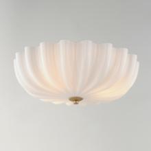 With glossy opal white glass shades, this collection brings a graceful, feminine touch to the inverted bowl design inspired by the shape of a bundt cake. Suspended by a decorative circular ring chain, the shade features an acrylic dust cover that encloses