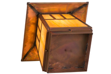 Custom made from Solid Copper. A stunning Craftsman Signature design statement is captured with a dramatic Mission styled straight line design. Highlighted with Beige Iridescent Glass and decorative accents and hardware featured in a Vintage Copper finish. This indoor/outdoor deck light is ideal for various applications in residential and commercial environments. Handcrafted in our 180;000 square foot manufacturing facility in Yorkville; New York. Diffuser colors; metal finishes and fixture sizes can be customized to your needs. UL and cUL listed for dry; damp and wet locations.