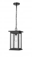 Influenced by clean and angular lines, rooted in the philosophy of the Arts and Crafts movement, the Bowton Collection of outdoor pendant lighting is a great choice for both Craftsman bungalows and Modern Farmhouse alike. The steel fixture is finished in elegant powder coat black and is complemented by vintage style clear seedy glass. It’s a definitive and stately design statement that adds the perfect touch to any porch or portico.