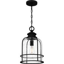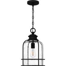 Bowles outdoor lanterns give a nod to both industrial and coastal design. The stately silhouette features clean lines, intricate hook detailing, and exposed bulb sockets - all in a classic Earth Black finish. Clear seedy glass completes the look, offering