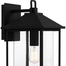Fletchers classic silhouette boasts a sleek design that combines transitional style with industrial elements. This collection of post, hanging, and wall lanterns provides ample, ambient lighting with the refinement of clear glass. An earth black frame comp