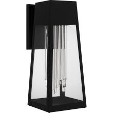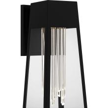 Guinn outdoor wall lanterns add a touch of contemporary luxury to your homes exterior. The sleek silhouette is finished in matte black and complemented by clear glass panels, allowing the integrated LED light source to shine brightly through the sparkling