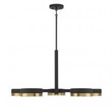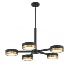 Substantial in size and style, the Savoy House Ashor 5-light chandelier is designed to beautify large spaces with its geometric look and two-tone finish. Sparkling faceted crushed crystal inside each light, illuminated by integrated LED, will truly wow anyone who sees it. Ashor is 34" in diameter and has an adjustable height ranging from 22" to 68". Comes with four 12" downrods and one 6" downrod, plus 80" of cord.