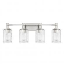 Add a big dose of shimmer with the Concord 4-light bath vanity light from Savoy House. Its ribbed glass shades are paired with ribbed detailing on the arms, boosting the inviting texture. The Silver and Polished Nickel finish helps every element shine. Concord is 10.5" in height, 30.75" in width and extends 6.5" from the wall. Uses four standard size bulbs of up to 60 watts per bulb. Bulbs not included. Damp area rated. Must be installed as shown.