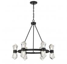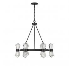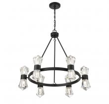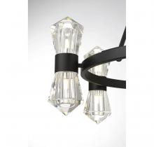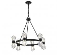 Large in scale and style, the Savoy House Dryden 12-light chandelier is like a beautiful diamond bracelet for your home. Dramatically faceted and pointed pieces of crystal decorate a simple circular structure that is finished in goes-with-anything matte black. Dryden is 30" in height and 32" in diameter. It uses twelve G9 size LED bulbs of up to 4 watts per bulb. Comes with 120" of chain and 144" of cord.