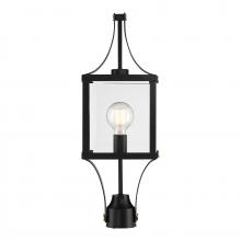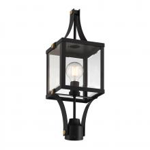 Make your outdoor lighting super fashionable with the Savoy House Raeburn 1-light outdoor post lantern. A central cube of beveled clear glass is surrounded by a boldly structured frame finished in Matte Black and adorned with thoughtful detailing in Weathered Brushed Brass. Raeburn is 23.5" in height and 8.5" in width. Uses one standard size bulb of up to 60 watts. The bulb is not included. Wet area rated.
