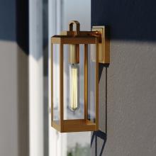 Elongated, slim, clear glass panels frame the Kinzie for a clean, contemporary feel. The oblong lantern handle adds an additional design element to this outdoor wall light collection. Finished in vintage brass, the Kinzie creates a bold but understated look perfect for highlighting your space. Dusk to dawn photo cell automatically turns fixture on in the dark and off in the light for added safety and security, saving energy during daylight hours. Combine that with vintage Edison style filament bulbs to complete the look. This outdoor wall light is ideal for your porch, entryway, garage, or any other area of your home.